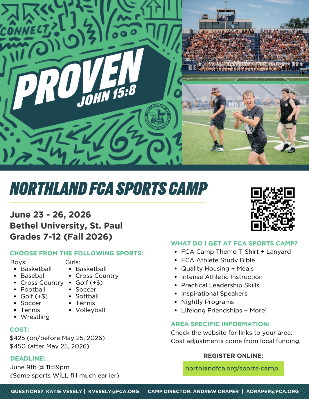 Join other students from Haven Church, the Chippewa Valley, and surrounding areas as we learn more about Jesus through sports! Get ready for a life-changing week! We can’t wait to have you join us. :)