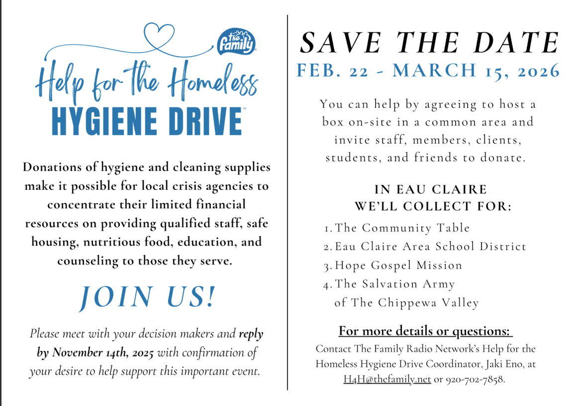 Join Haven and many other churches in Eau Claire as they work together to help families in Eau Claire!